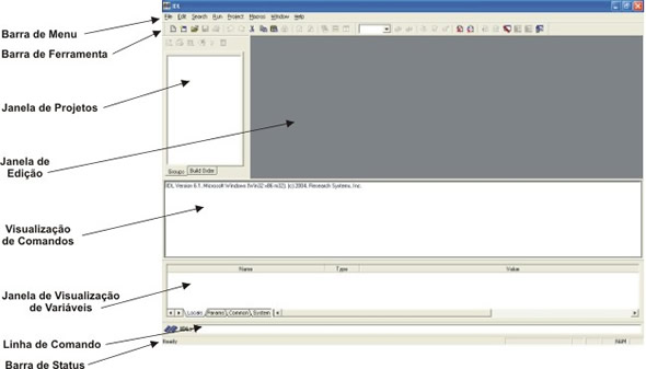 O ambiente de desenvolvimento do IDL (IDLDE) é uma interface gráfica que fornece ao usuário ferramentas para edição e depuração de erros para o IDL.