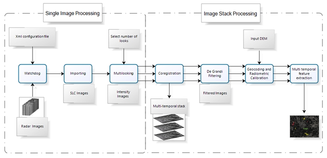 Devido ao grande volume de dados, existia a necessidade de realizar processamento paralelo, onde diversas imagens seriam processadas simultaneamente, reduzindo o tempo total necessário para chegar ao resultado esperado. As soluções de processamento foram estruturadas de forma a possibilitar o processamento das imagens de radar em múltiplas estações de trabalho, sendo que o gerenciamento e controle das tarefas é realizado por um servidor central de processamento.